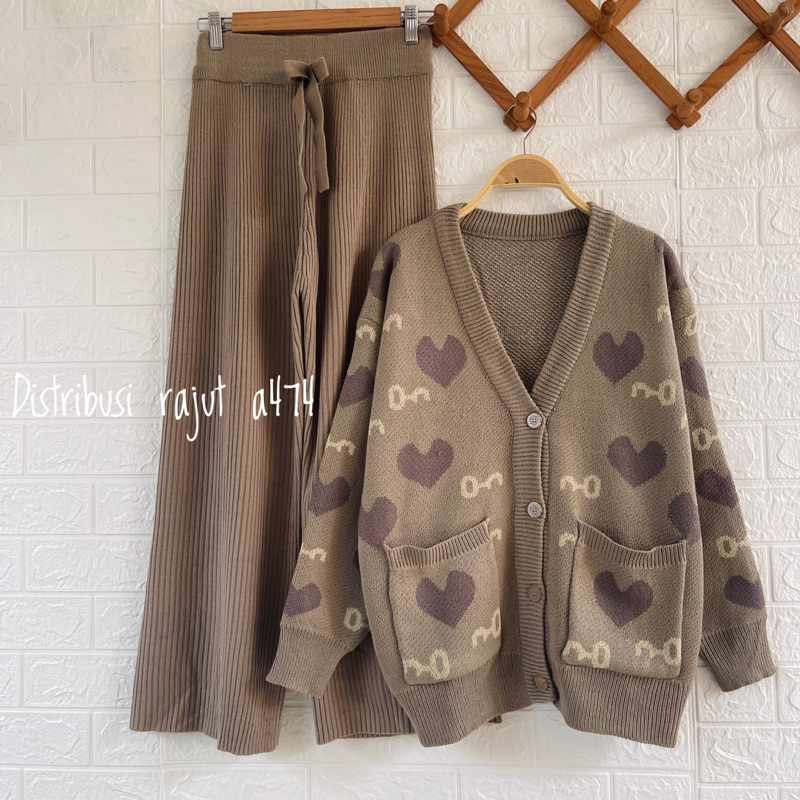 Detail ONESET CARDIGAN VALENTINE SETELANA CELANA KULOT RAJUT WANITA