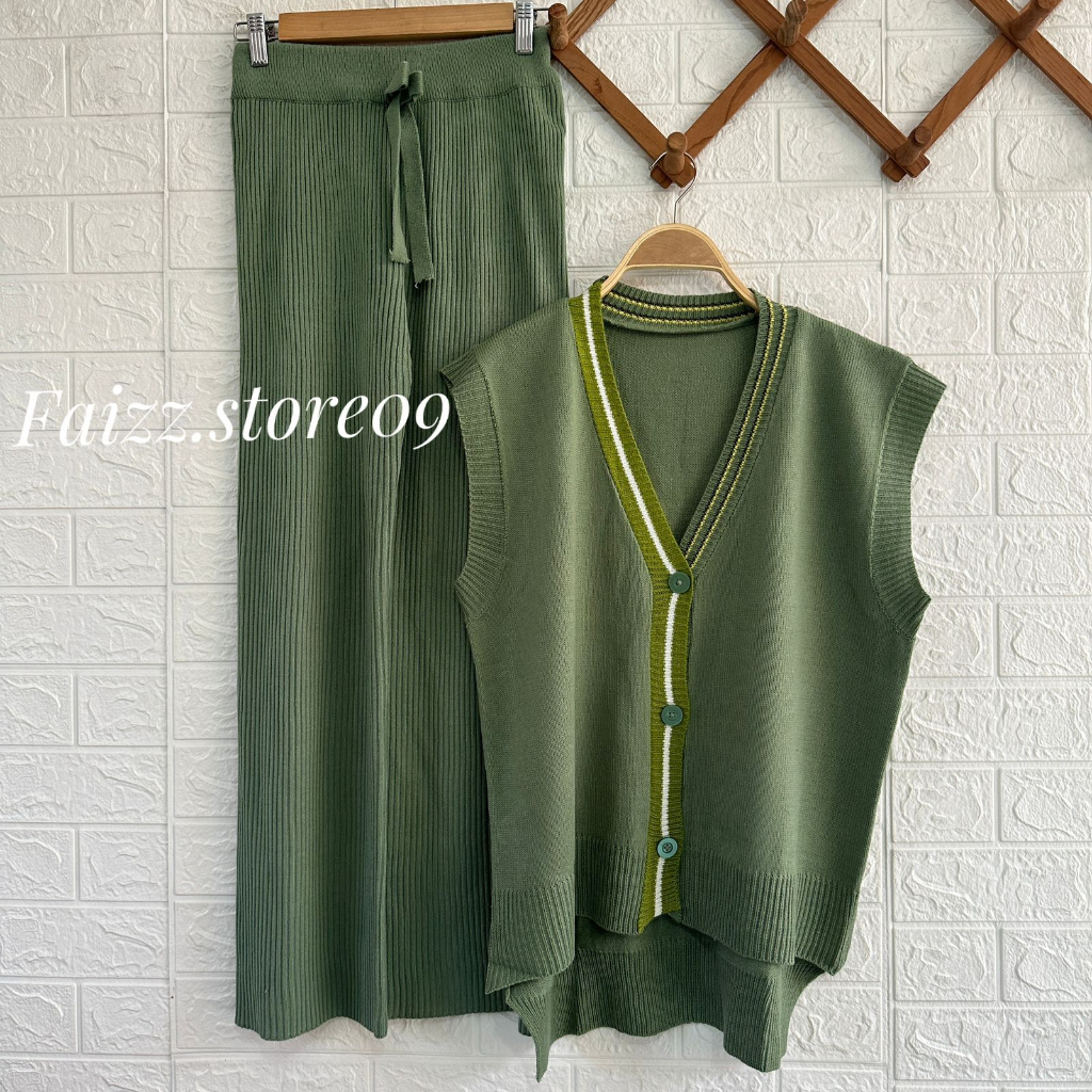 Detail Oneset Dhusi Rompi Rajut Setelan Celana Kulot Wanita