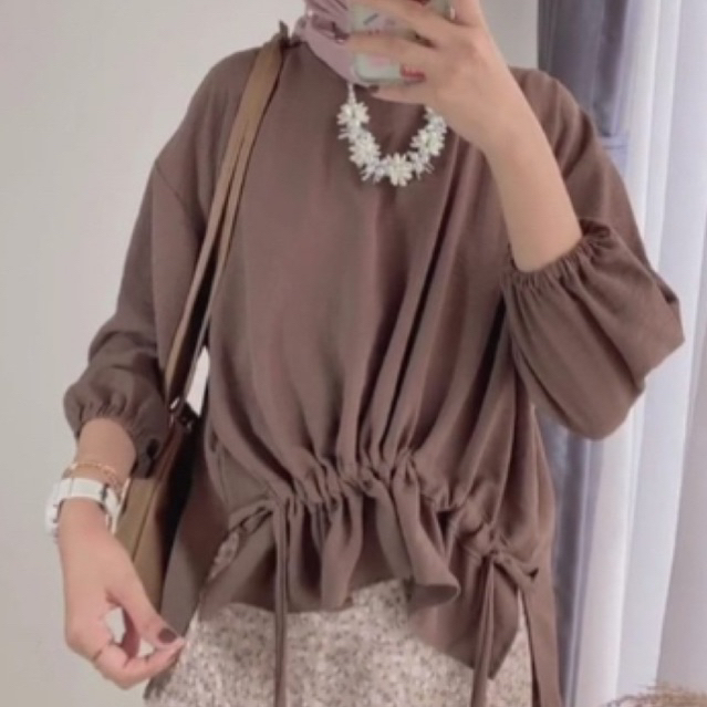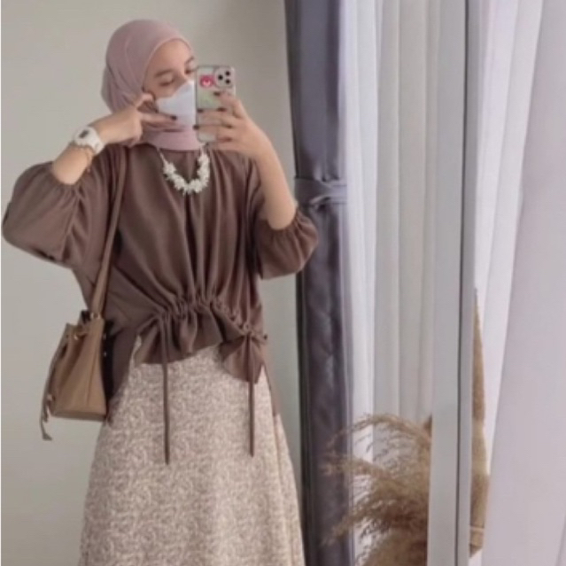 Oneset Dress Korean #Blouse# Bahan : Crinkle Airflow Size : Allsize Fit L Lingkar Dada : 136cm Panjang Baju Depan : 52cm Panjang Baju Belakang : 61cm Panjang Lengan : 31cm
