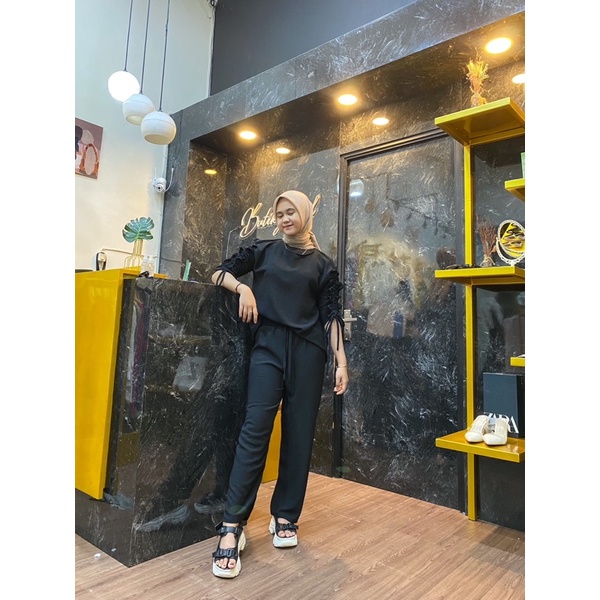 Warna hitam favorite✨🫶🌸 Gemess dengan aksen serut di bagian lengan tangan 💓