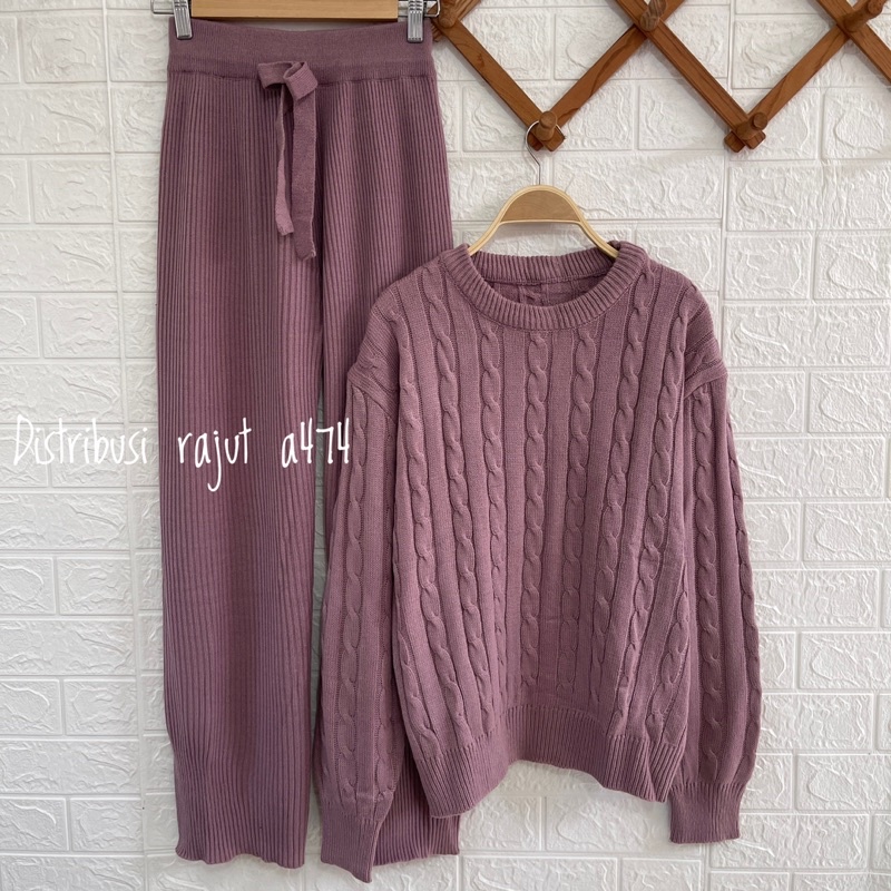 Detail ONESET SWEATER CABLE COUPLE FULL OVERSIZE SETELAN KULOT DAN ROK