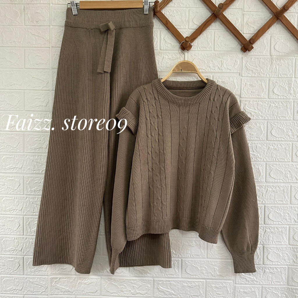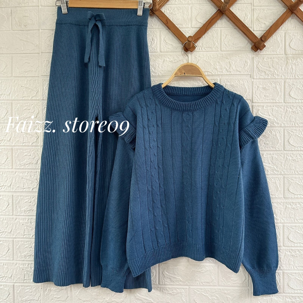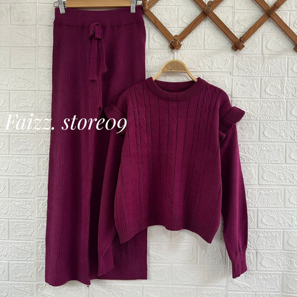Detail Oneset Sweater Rajut Aisyah Setelan Celana Kulot Premium Wanita