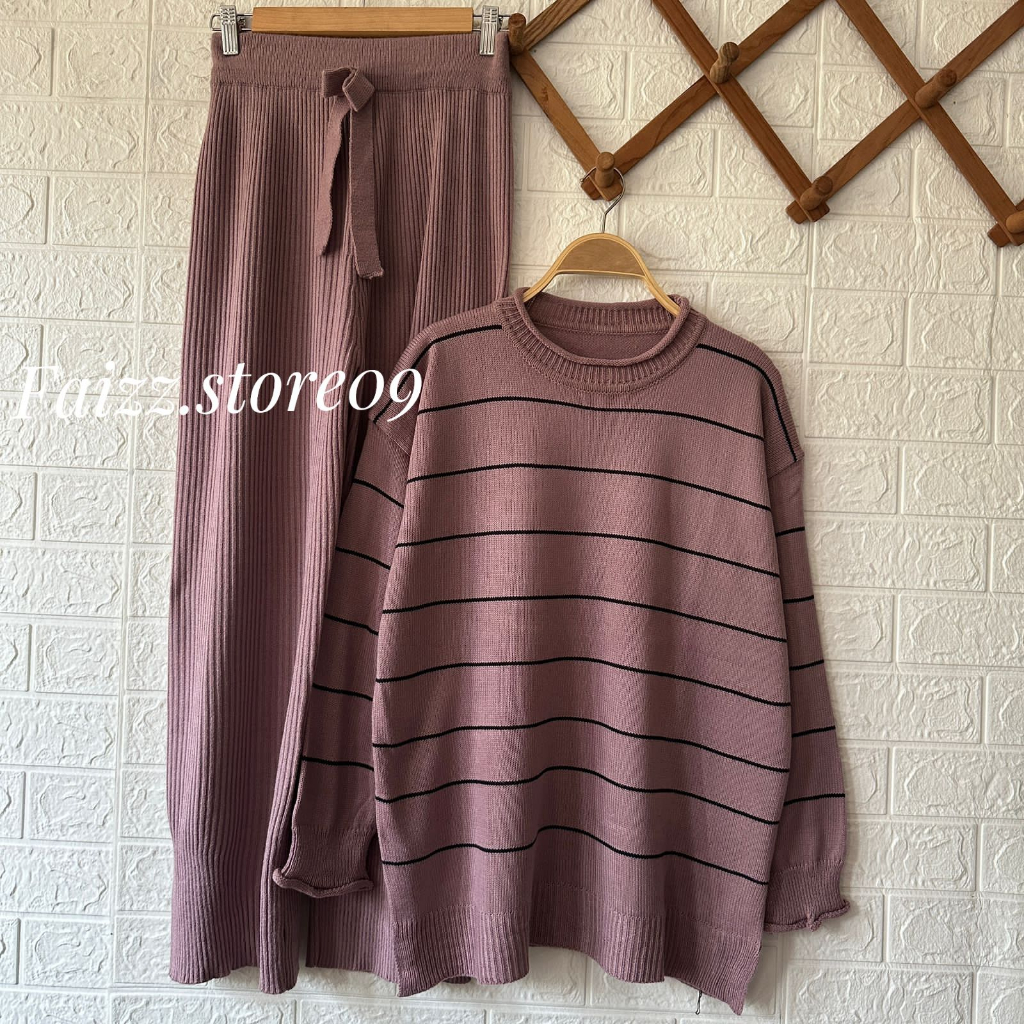 Detail Oneset Sweater Rajut Tiurma Setelan Celana Kulot Wanita