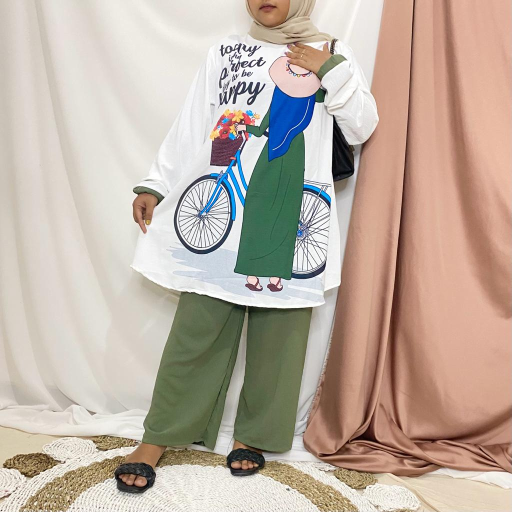 Detail ONESET TUNIK CRINKLE KARAKTER/ SETELAN BAHAN CRINKLE AIRFLOW