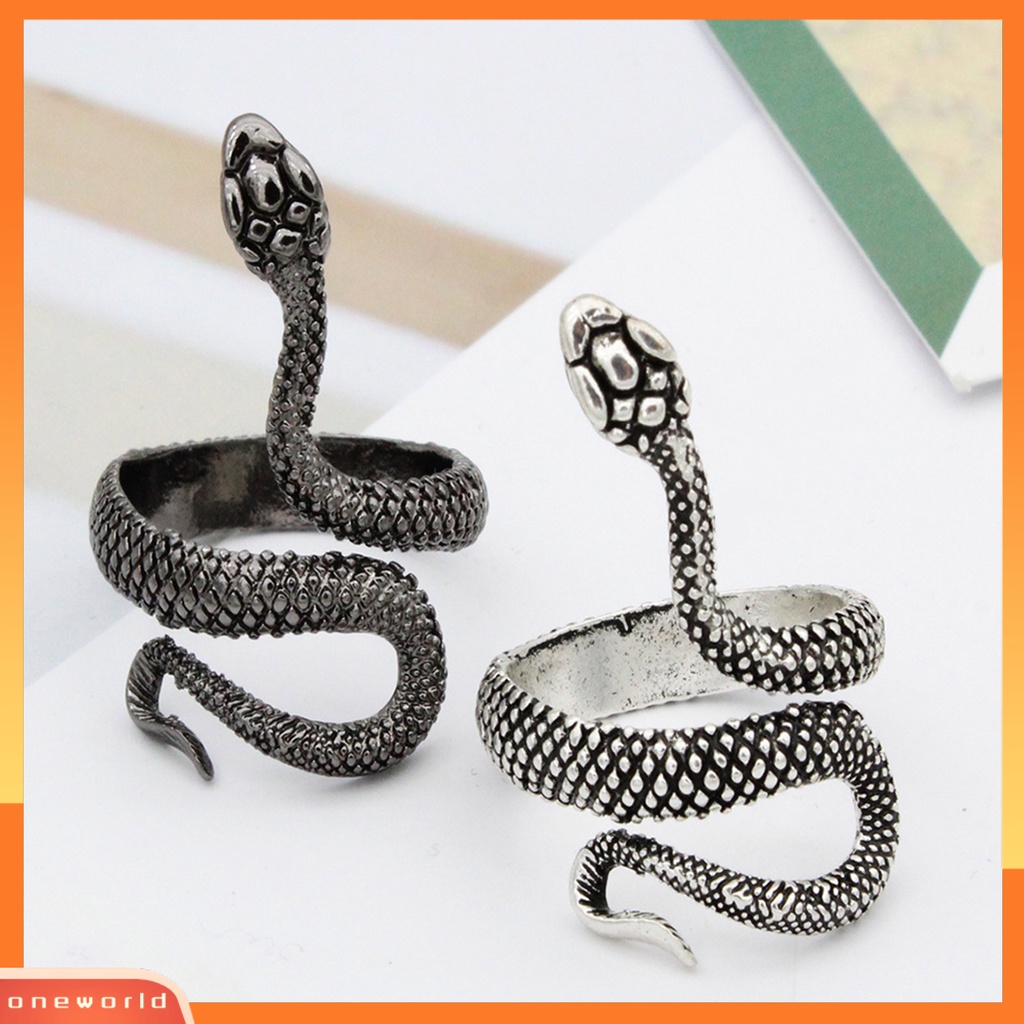 Detail {oneworld} Cincin Desain Bentuk Ular Adjustable Alloy Open Jewelry Finger Band Untuk Kehidupan Sehari-Hari
