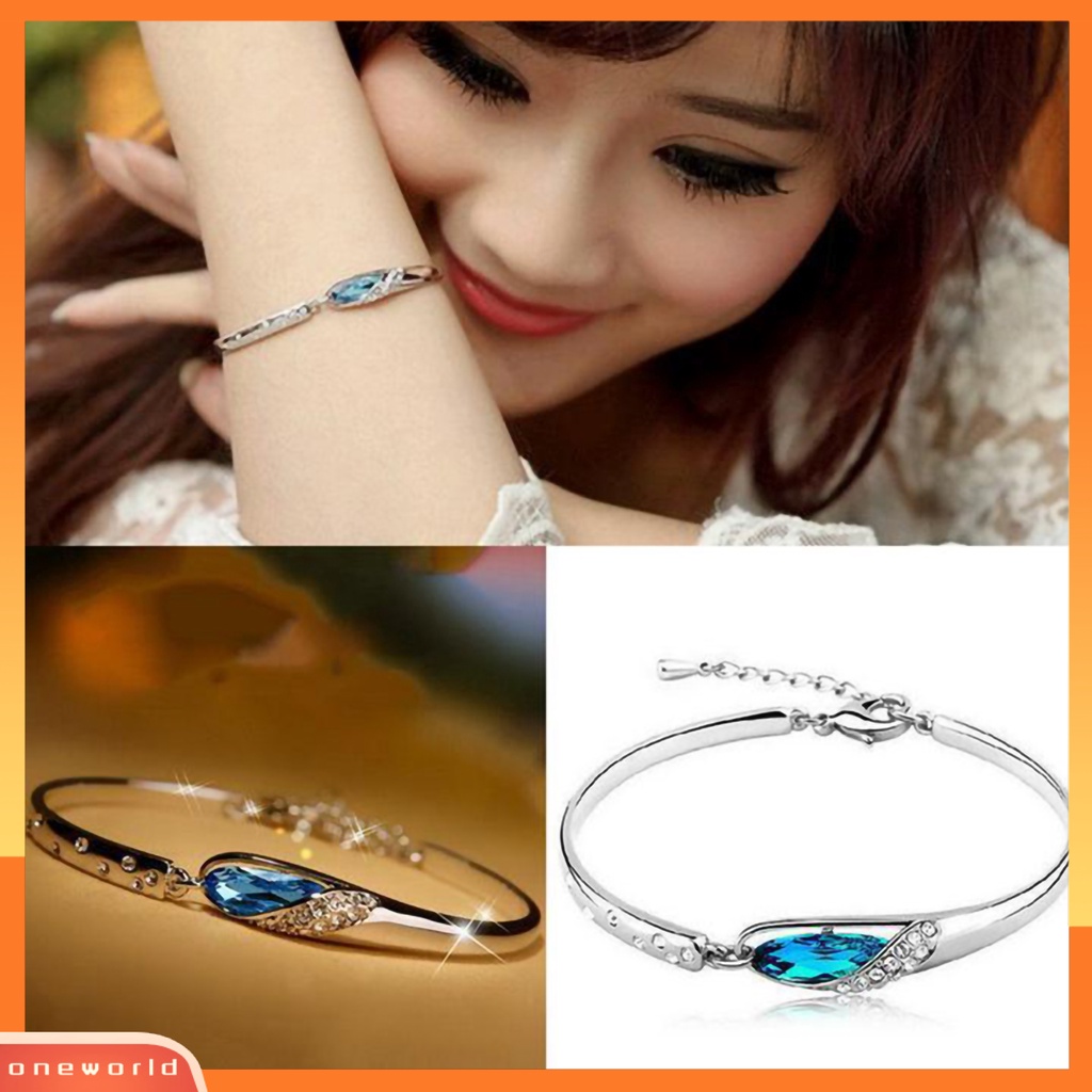Detail {oneworld} Gelang Bangle Fashion Berlian Imitasi Ramah Kulit Elegan Untuk Pacaran
