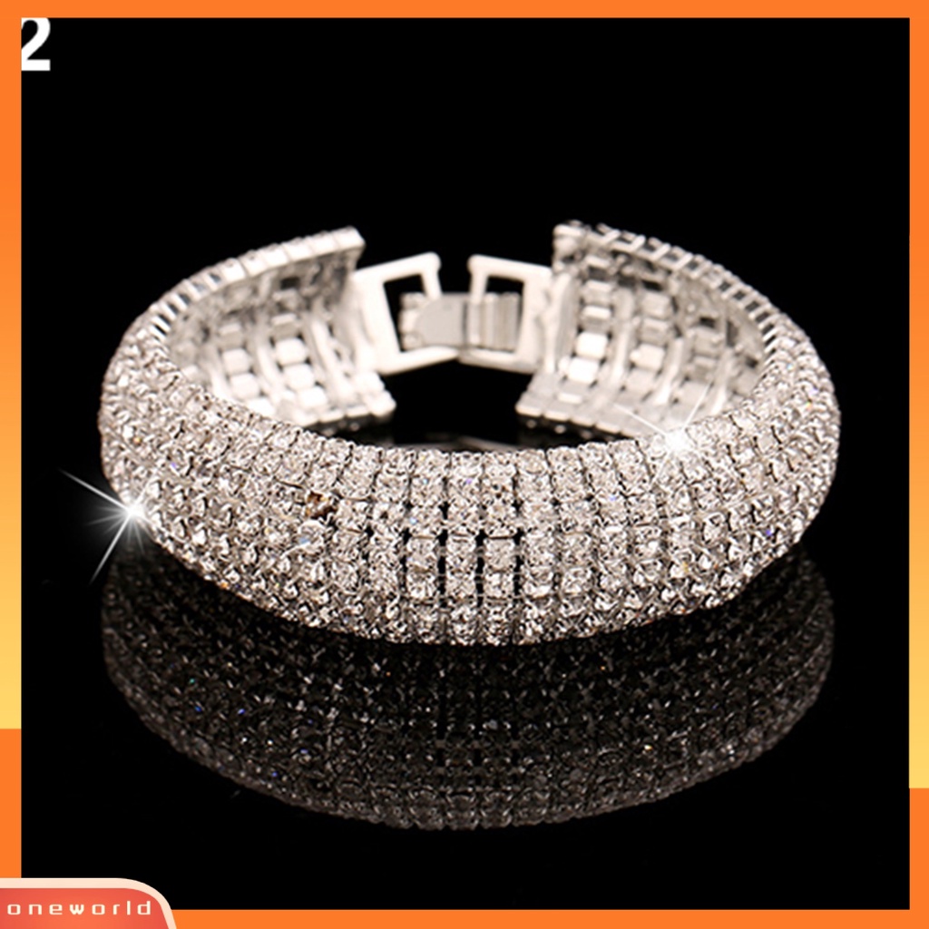 {oneworld} Wanita Hadiah Perhiasan Gelang Bangle Lebar Berlian Imitasi Gaya Romawi Untuk Pesta Pernikahan Perjamuan