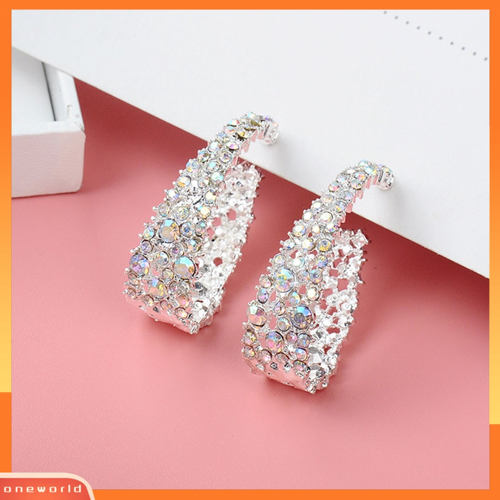 Detail {oneworld} Women Ear Studs Shiny Colorful Rhinestones U-shaped Stud Earrings Perhiasan Tindik Untuk Pesta