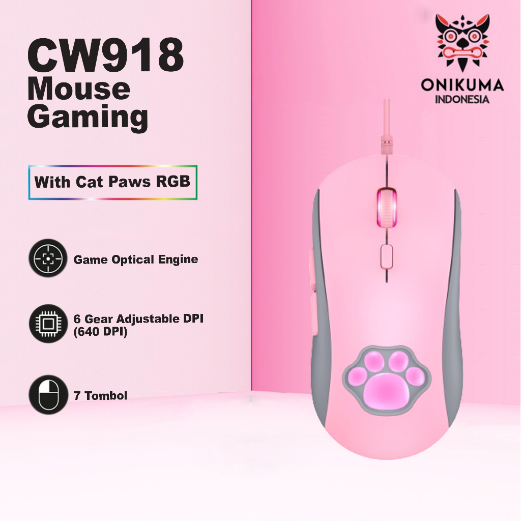 MOUSE GAMING ONIKUMA CW918 PINK MODEL CAT PAWS DENGAN RGB BACKLIGHT ORIGINAL