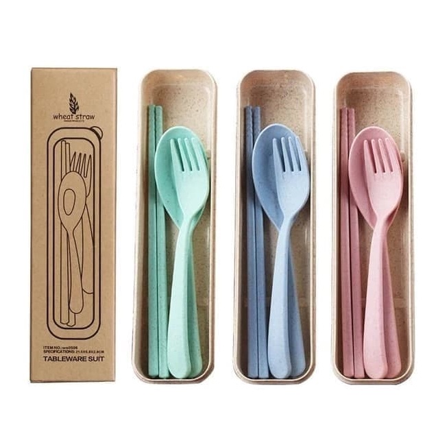 Perlengkapan Rumah > Peralatan Makan > Alat Makan > ONLYONE12 Set Sendok Travel Cutlery Box / Set Alat Makan 3in1 / Sendok Garpu Sumpit Kotak Bahan Jerami