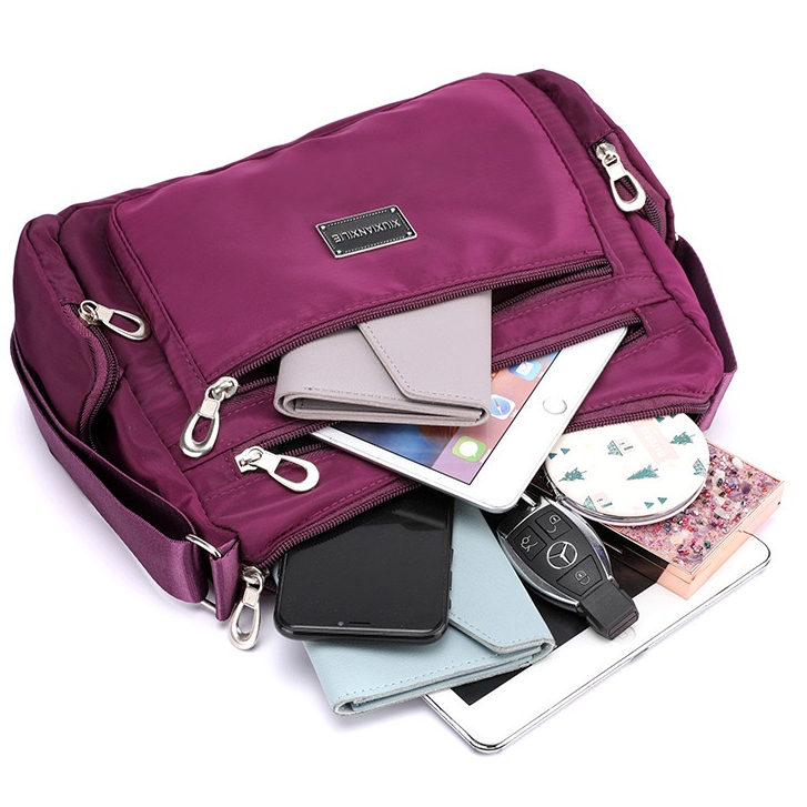 Tas selempang wanita NYLON IMPORT : -BAHAN : WATERPROOF NYLON - SIZE : 28CM X 11CM X 20CM - TAS IMPORT BUKAN LOKAL - Ready Warna : Hitam, Pink Fanta, Biru, Merah, Ungu