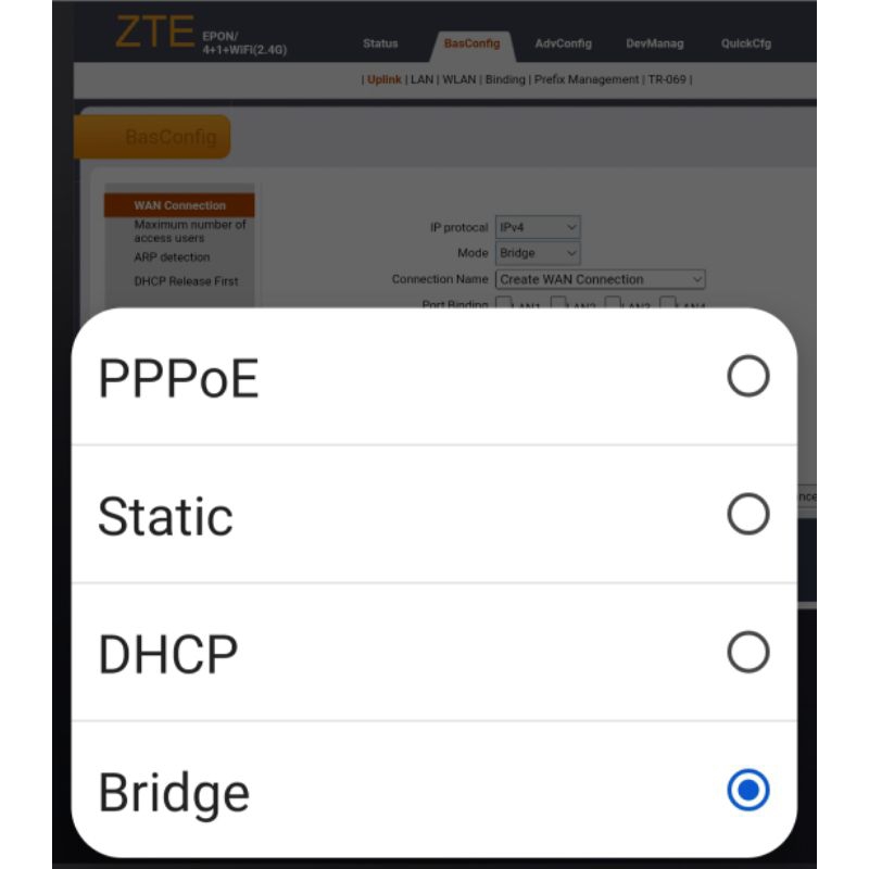 Support : PPPOE, STATIC, DHCP & BRIDGE + 4 SSID AP Wifi, VLAN.