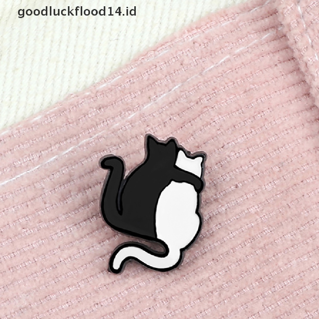 Detail [OOID] Black And White Cat Enamel Pins Hugging Cats Brooches Cartoon Cute Animal Brooch ID