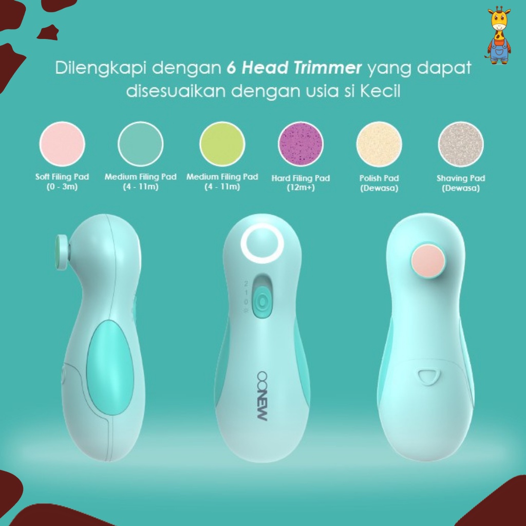 ⭐ Benefit produk: - Rotasi lembut 360 derajat - Desain ergonomis - Mesin tidak berisik - Aman & nyaman digunakan, dengan 2 kecepatan yang bisa disesuaikan - Mencegah jari bayi/balita terluka ketika menggunting kuku - Dapat digunakan oleh orang dewasa - Dilengkapi dengan 6 head-trimmer berbahan Polimer-ABS yang bisa diganti sesuai fungsi perawatan kuku, jemari, & telapak tangan