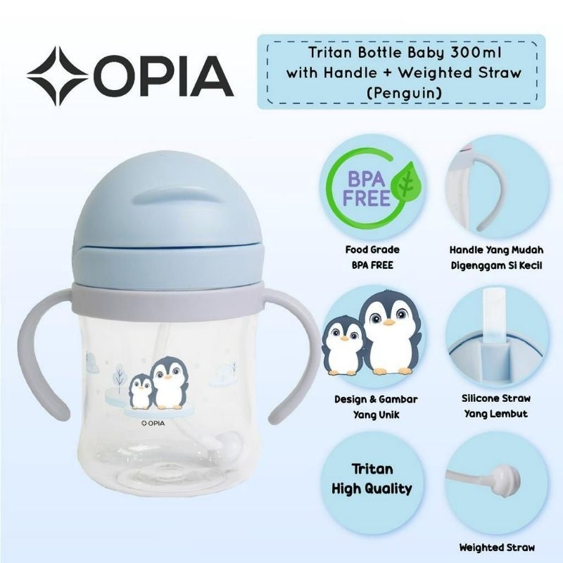 Opia Tritan Baby 300ml (Penguin) – Botol Minum Bayi Anti Sedak Sekolah MPASI Weighted Straw