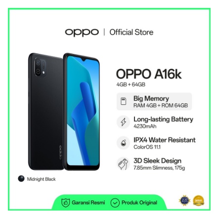Detail OPPO A16K 4GB/64GB New Garansi Resmi Oppo A16 K