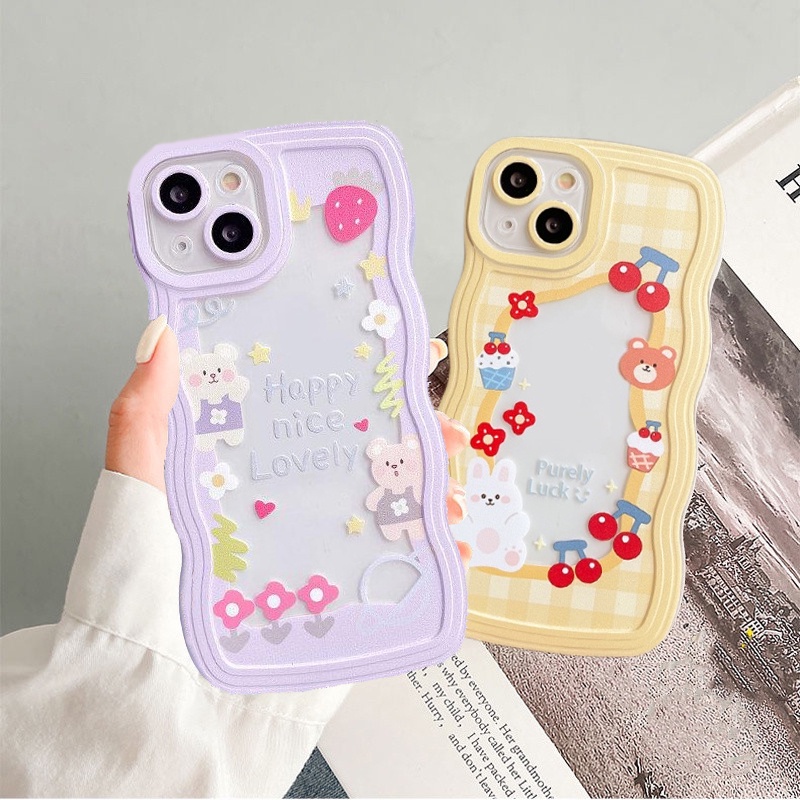 Detail OPPO A78 A17 A77 A77s A57 A76 A96 A16 A16s A16k A15 A15s A54 A74 A55 A95 A94 A93 A53 A33 A32 A5 A9 2020 A5s Reno 8T 7Z 6Pro F11 F9Pro Cute Cartoon Animal Wave Frame Phone Case TPU Soft Cover 🌸Merk: fanyis3🌸
