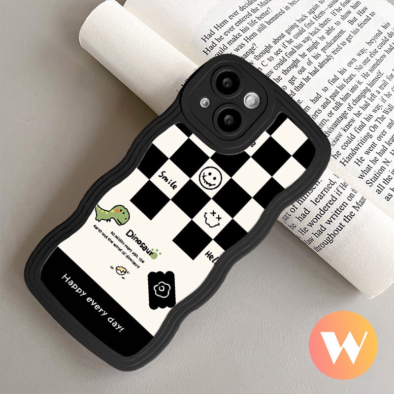 Oppo A95 A16 A78 A57 A7 A96 A15 A55 A17K A77 A5 A9 A77s A54 A16s A3s A53 A1k A76 A16K A5s A74 A52 A12 A17 Reno 8 7Z 8Z 6 Wavy Edge Cute Smiley Papan Catur Kartun Dinosaurus Soft Case