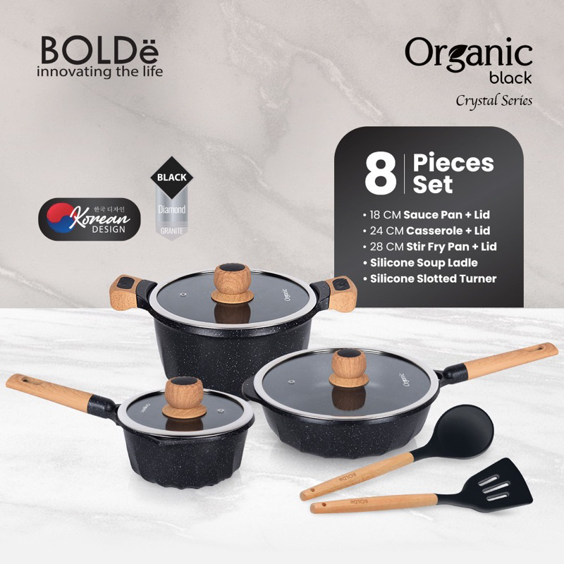 -non-stick Organic Granite coating; Crystal Black pan dilapisi dengan bahan anti lengket alami sehingga memasak dan membersihkan jauh lebih mudah. Mampu Memasak dengan sedikit minyak untuk diet sehat anda dan menahan Suhu panas hingga 220℃-280℃.