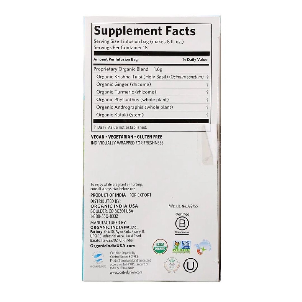 ORGANIC INDIA's foundational herb, adaptogenic Tulsi, blended with Ginger, Turmeric, Katuki, and other herbs. Supports the body's detoxification process.