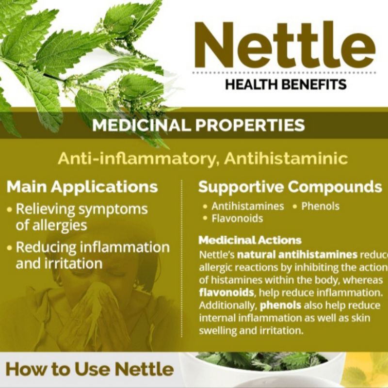 *). Nettle secara historis telah digunakan untuk mengobati nyeri sendi dan nyeri otot, terutama yang berhubungan dengan artritis . The Arthritis Foundation menyarankan bahwa teh nettle juga dapat mengurangi peradangan dan nyeri yang berhubungan dengan osteoartritis.