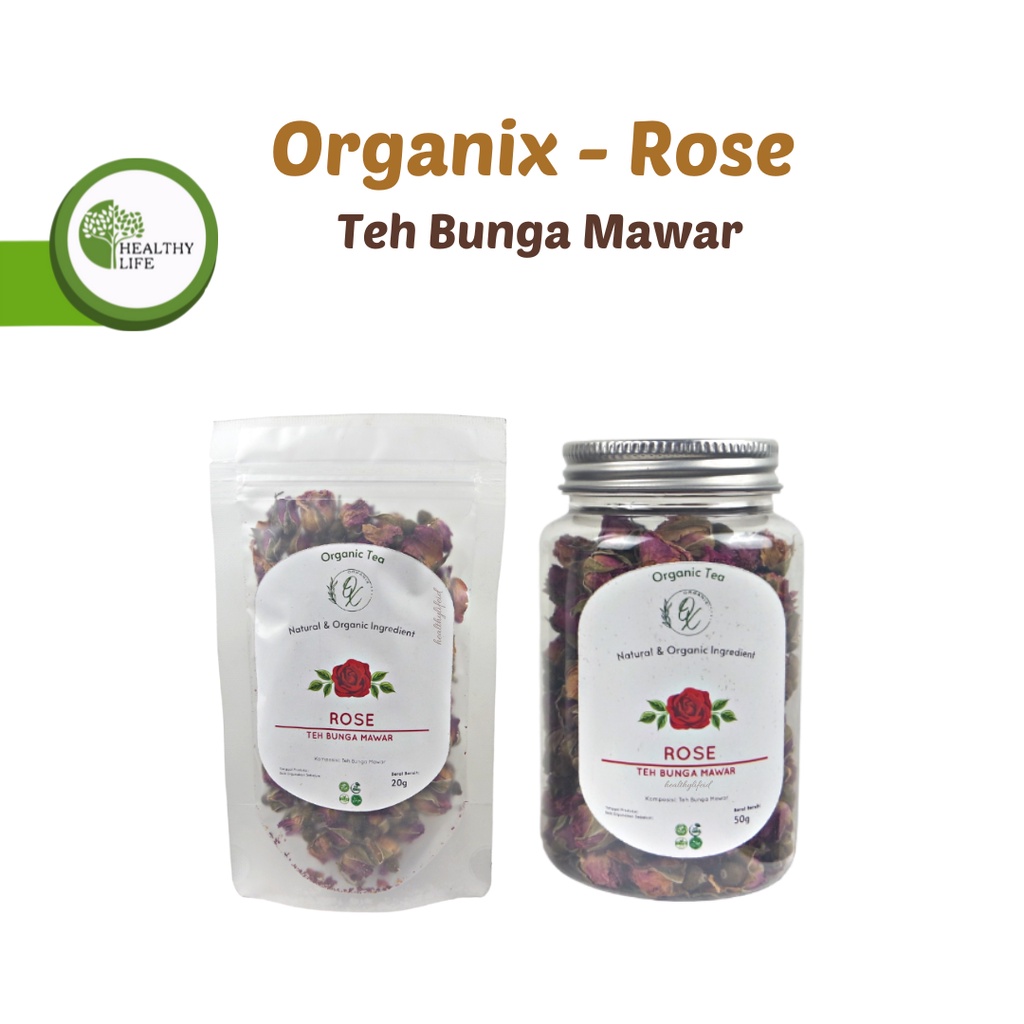 Rose tea ini merupakan kuncup bunga mawar yang dikeringkan. Teh Rose memiliki wangi mawar yang kuat dan nikmat. Dapat digunakan sebagai garnish, pembuatan kue dan diseduh menjadi teh.