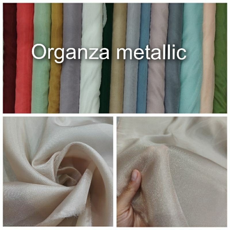 MADE IN JAPAN ASLI Kain organza metalik ini seperti ada benang kilapnya/glitternya, jadi kainnya bisa kerlap-kerlip sehingga terkesan mewah, tekstur sedikit lebih kaku daripada kain organza yg biasa. Bahan kain transparan ya. Kami hanya menjual bahan kain saja, jadi belum diolah dalam bentuk apapun juga ya. Cocok utk dress/gaun, kerudung/stylish hijab, kerajinan tangan/craft, pita, dekor, Mewahhh !! Cocok utk hijab, gamis, gaun, dress wedding, kebaya