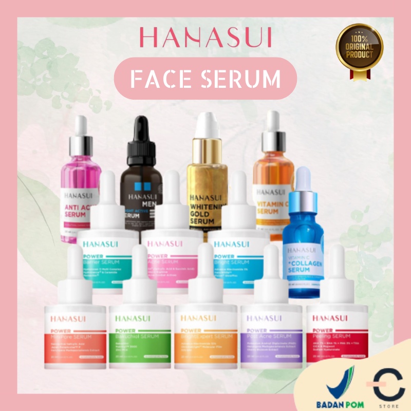 Perawatan & Kecantikan > Perawatan Wajah > Serum & Essence Wajah > [ORI BPOM] Hanasui Face Serum Whitening Gold | Vitamin C + Collagen | Anti Acne | Vitamin C | Gold | Men Bright Rich Propolis Intense | Hanasui Power Serum Series | Power Post Acne | Power Peeling | Power Bakuchiol | Power Bright Expert | Power Barrier