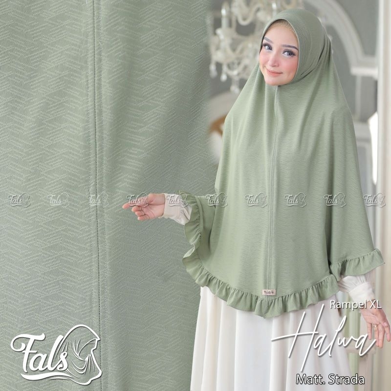 Detail (Ori Fals) HALWA REMPEL XL •jilbab instan jumbo jersey strada•hijab instan syari pet rempel motif