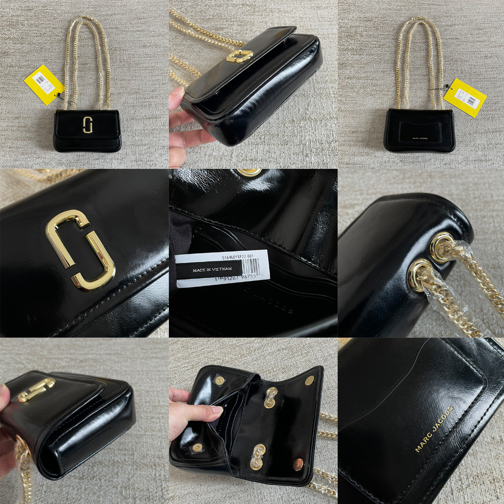 Curb chain shoulder strap · Logo hardware at face · Card slot at back face · Foldover flap · Two card slots at interior · Patch pocket at interior · Twill lining · Gold-tone hardware · H4.5 x W7 x D2 Size:17X11X4CM Full original pacakge