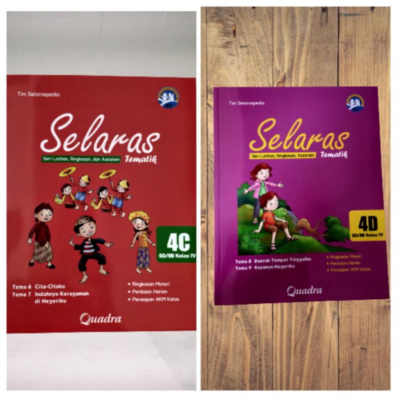 Detail ORI satu paket buku teks SELARAS tematik k13 untuk SD/mi kelas 4 semester 2 edisi terbaru penerbit Quadra
