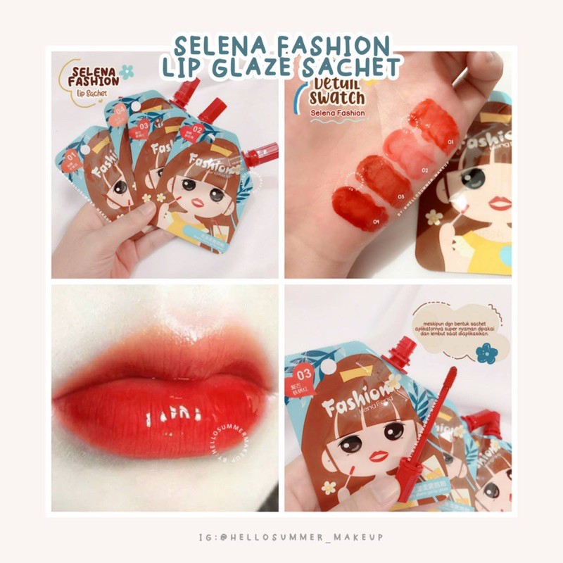 β¨ORI THAILANDβ¨ Selena Fashion Lip Hlaze Color Sachet πΉπ· π° IDR 11.999-, /pcs π° IDR 39.999-, /pcs - Nih ada lipglaze super lucu bibgits beb, masih seri sama nanako fashion, cuma beda di warna packagingnya aja. π - Nah buat kalian yg bosen pake lip matte atau pengen pake lipstick yg ga bikin bibir kering, kalian mesti coba ini beb. - Dgn pakai lip glaze kamu bakalan dapetin tampilan bibir sehat ala pake lip balm dan ga kalah ringan juga, apalagi ini warnanya juga bakalan stay walopun glossynya ilang. - warna supwr pigmented, tahan lama, tahan air, tahan badai ππ