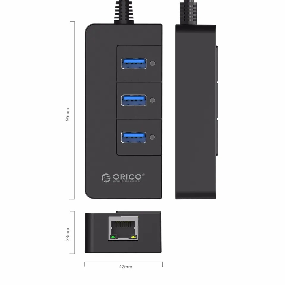 Detail ORICO HUB 3 PORT USB 3.0 + 1 PORT RJ45 GIGABIT ETHERNET HR01-U3