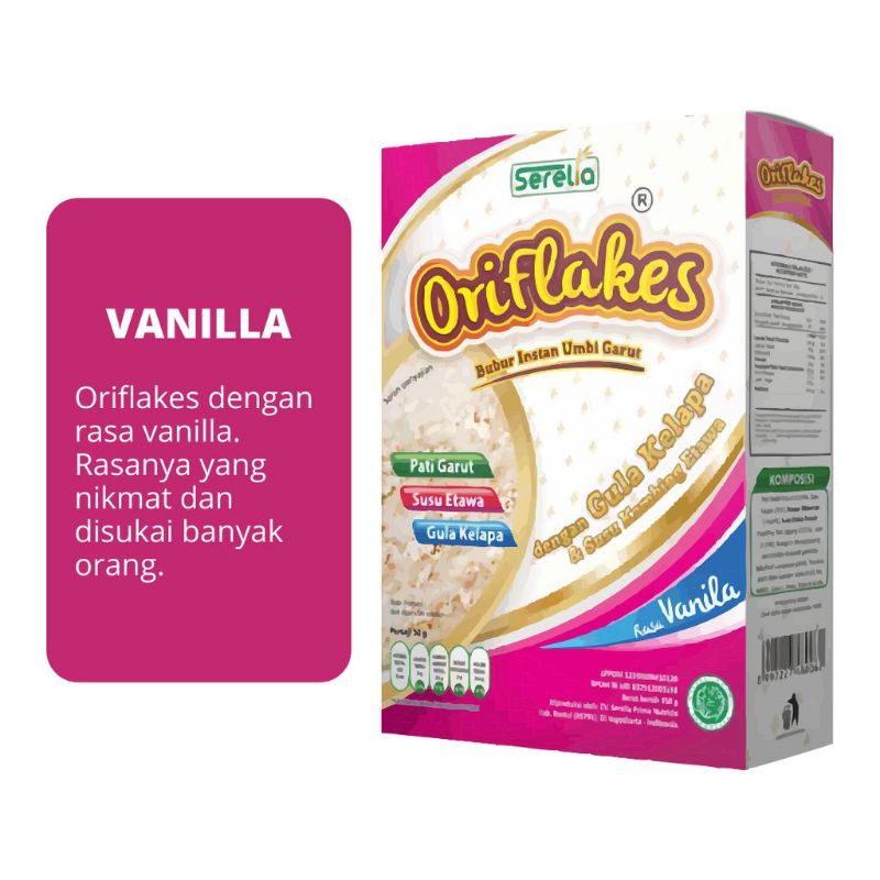 Oriflakes adalah minuman sereal pertama di Indonesia yang berbahan baku dari umbi garut yang kaya serat alami, bebas gluten (Non Gandum). Kandungan karbohidrat kompleks dan kaya serat yang dapat bertahan dalam tubuh lebih lama karena lebih lama sulit dicerna sehingga kita akan merasa kenyang lebih lama. Kondisi tersebut akan memaksa kita untuk makan dengan porsi lebih kecil sehingga jumlah kalori yang dikonsumsi akan terkontrol
