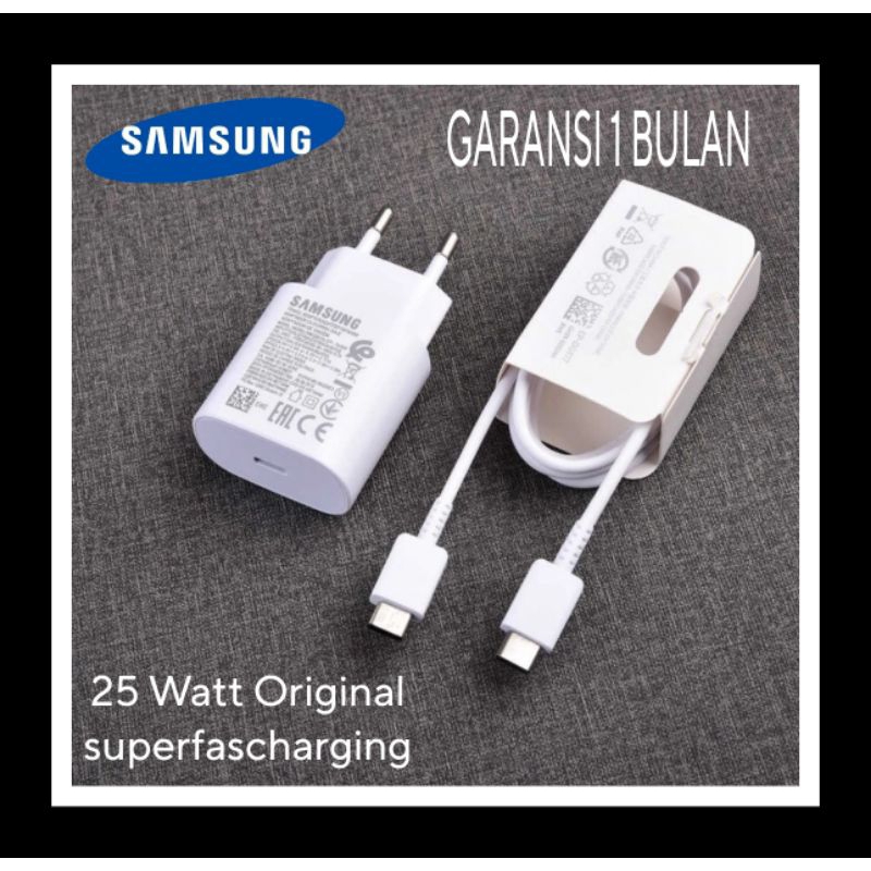 Detail (ORIGINAL 100% BERGARANSI) Charger adapter samsung original 25W 25 WATT TYPE C to TYPE C TIPE C Superfascharging Note 10 plus S20 S21 A70 A72 A80 M23 M51 A51 A50 A71 A90 S8 S9 S10 Note 8 9 10 20 ultra Superfastcharging