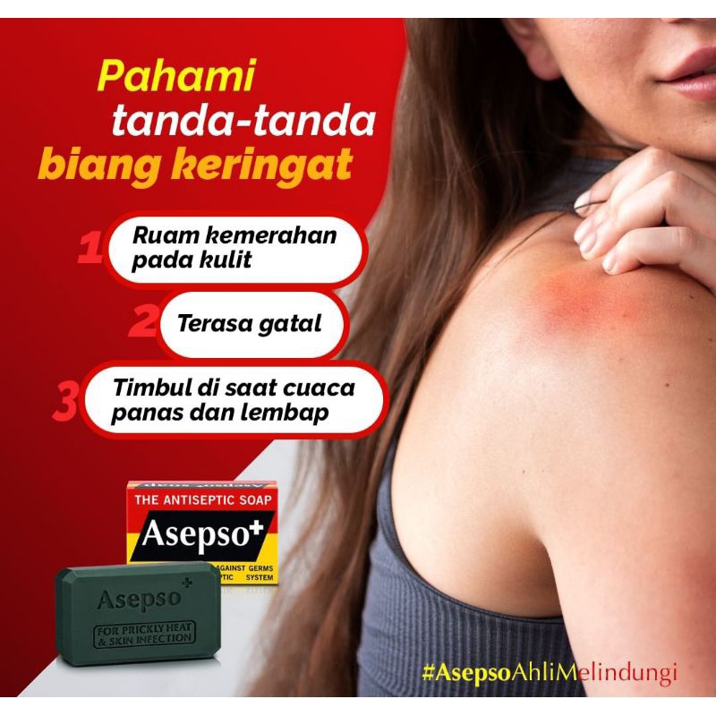 Asepso merupakan sabun antiseptik yang digunakan untuk mengurangi biang keringat dan membersihkan kulit dari kuman penyebab penyakit kulit.