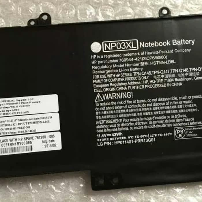 This laptop battery for Hp 760944-421, 761230-005, HSTNN-LB6L, NP03XL, TPN-Q146, TPN-Q147, TPN-Q148, TPN-Q149 This laptop battery work with Hp Pavilion 13-b080sa, Envy 15-u030nd, Pavilion 13-a000ns, Envy 15-u011dx, Pavilion 13-a010dx, Pavilion X360
