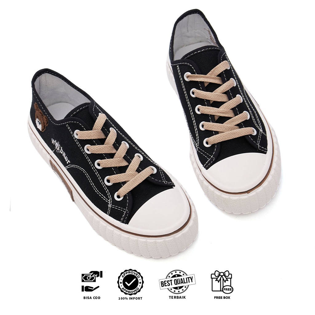 Tinggi sol : 5 cm Material : Kanvas + Kulit Sintetis Premium Material Sole : Karet Non Slip berat 1 sepatu di hitung 1kg, jika 2 sepatu masuk 2kg