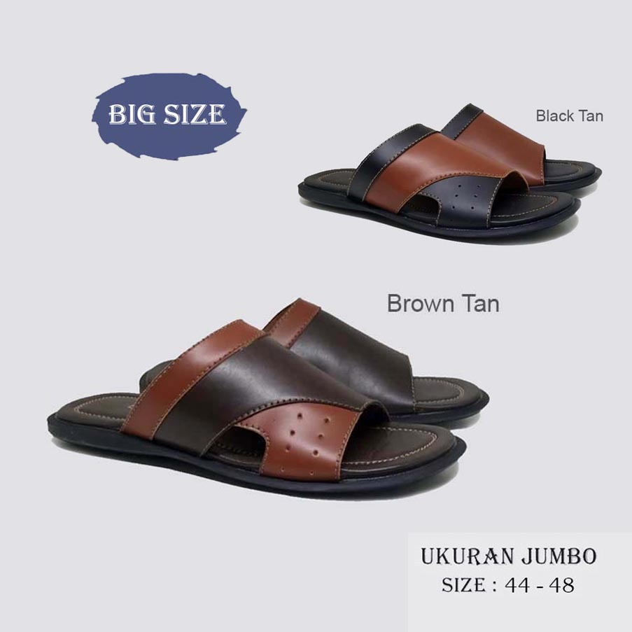 Detail ORIGINAL+GARANSI | Sandal Selop Pria Kulit Asli (Ukuran Besar Kaki Jumbo) Sendal Slide Bapak Dewasa