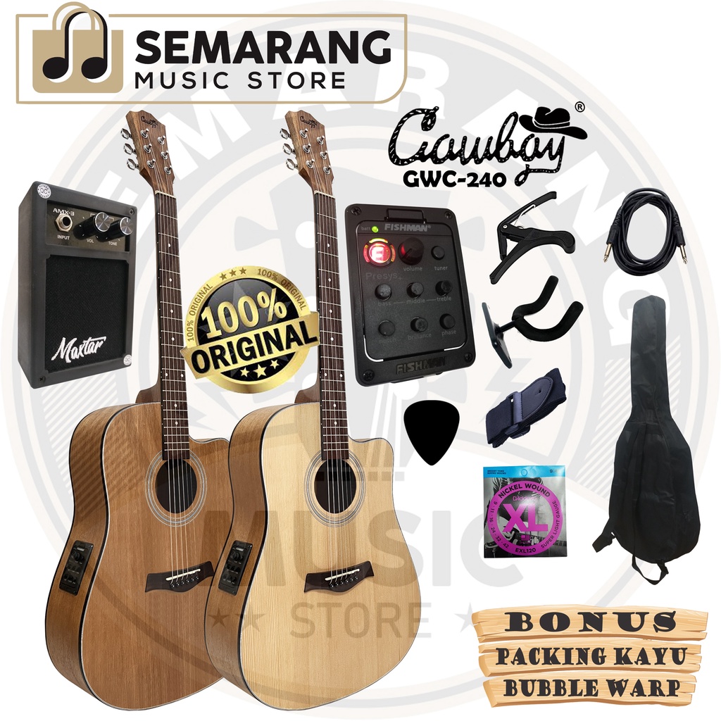 Hobi & Koleksi > Alat & Aksesoris Musik > Gitar & Gitar Bass > ORIGINAL!!! Gitar Akustik Elektrik Import Merk Cowboy GWC-240 NA GWC 240NS Equalizer Tuner Fishman