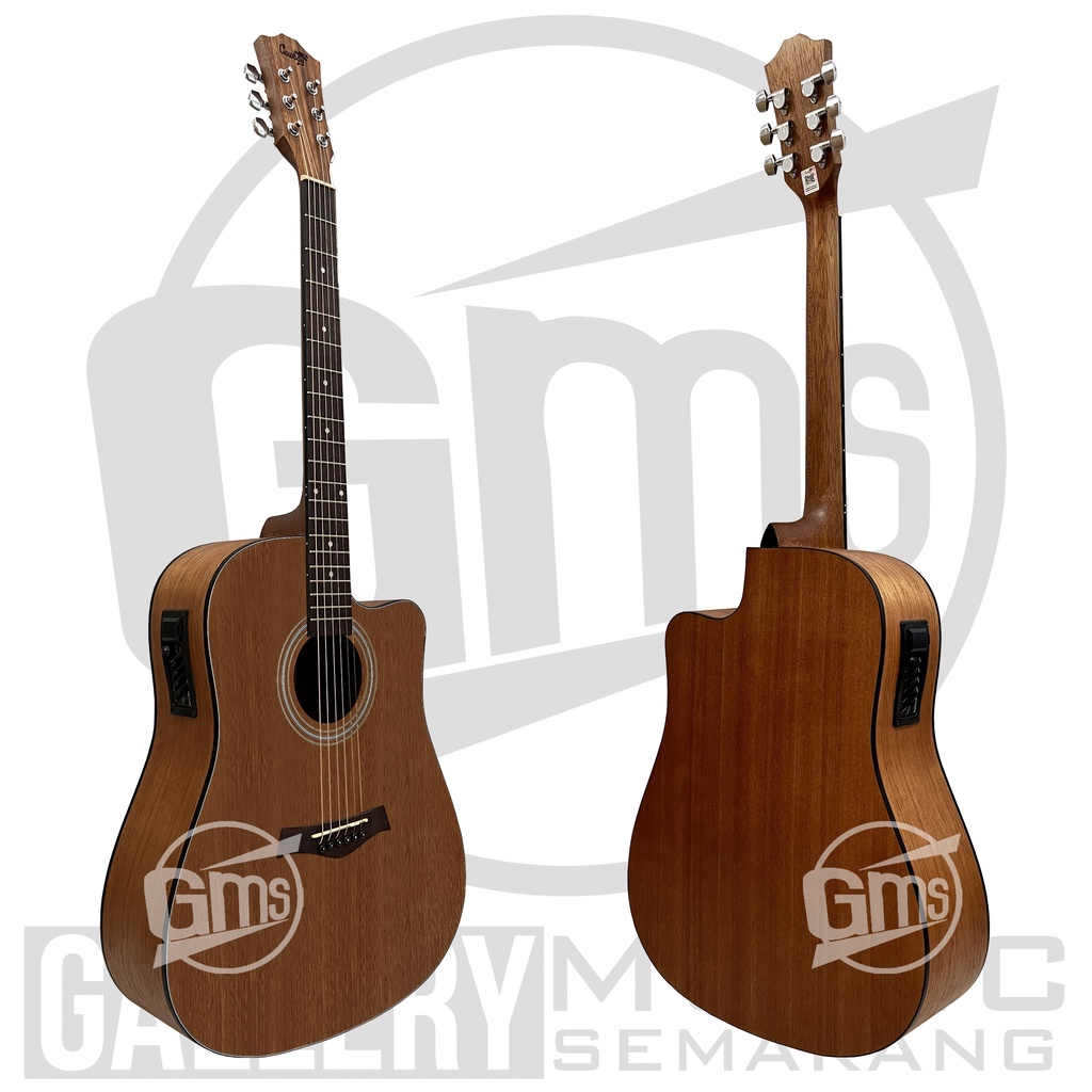 Spesifikasi : Top Body Spruce (NA) Back Side Nato Neck Mahogany Fingerboard Rosewood Bridge Rosewood Tanam besi/trushroad bisa di setting double action List penguat body Tuning Machine Dryer glover Rangka X silang Senar Cowboy String Fret steel/baja tebal Playbility nyaman di tangan Jarak senar rendah sehingga nyaman dimainkan Suara terjamin mantap Finishing mulus