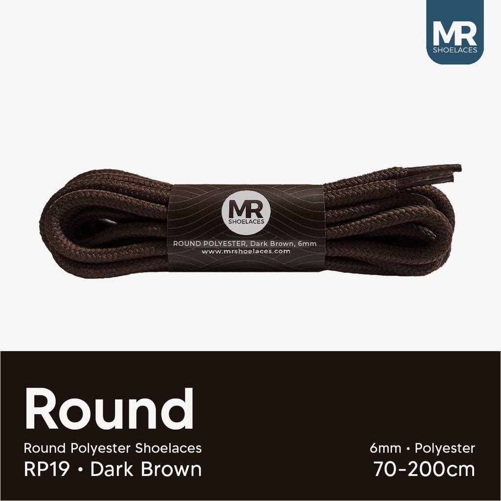 Detail Original MR Shoelaces RP19 Coklat Tua (Dark Brown) Tali Sepatu Bulat Round Big 6mm Shoelaces 90cm 100cm 120cm 150cm 180cm-200cm Polyester