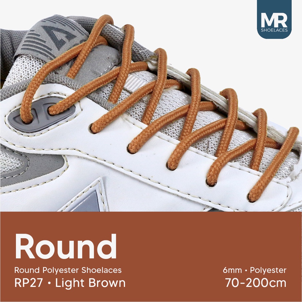 Detail Original MR Shoelaces RP27 Coklat Muda (Light Brown) Tali Sepatu Bulat Round Big 6mm Shoelaces 90cm 100cm 120cm 150cm 180cm-200cm Polyester