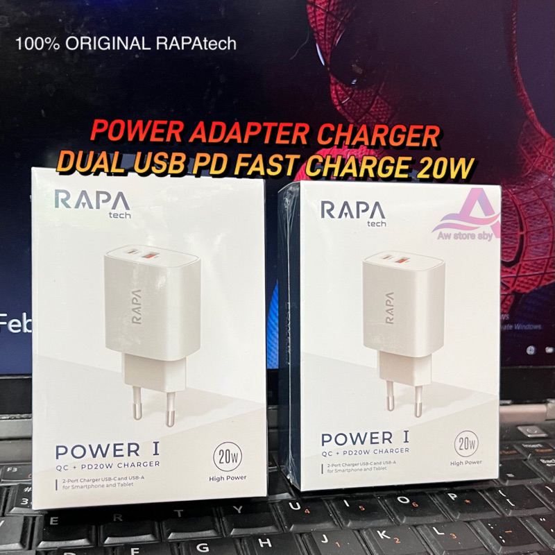 Detail ORIGINAL RAPAtech POWER ADAPTER DUAL PORT USB A & USB C CHARGER 20W PD FAST CHARGING (ADAPTOR CH-1020)