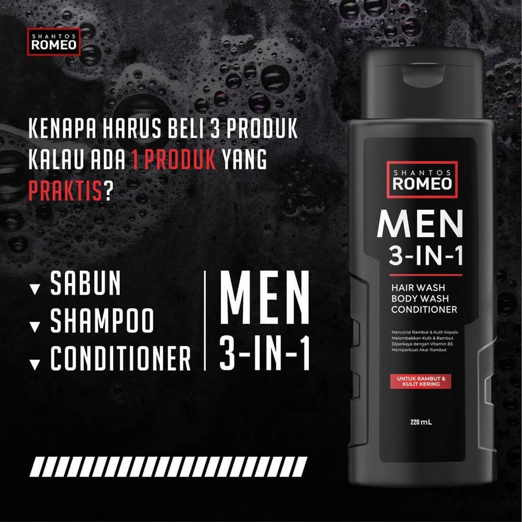 ORIGINAL Shantos Romeo Men 3in1 220ml Shampoo Conditioner & Body Wash / Shampo Sabun MandiORIGINAL Shantos Romeo Men 3in1 220ml Shampoo Conditioner & Body Wash / Shampo Sabun MandiORIGINAL Shantos Romeo Men 3in1 220ml Shampoo Conditioner & Body Wash / Shampo Sabun Mandi