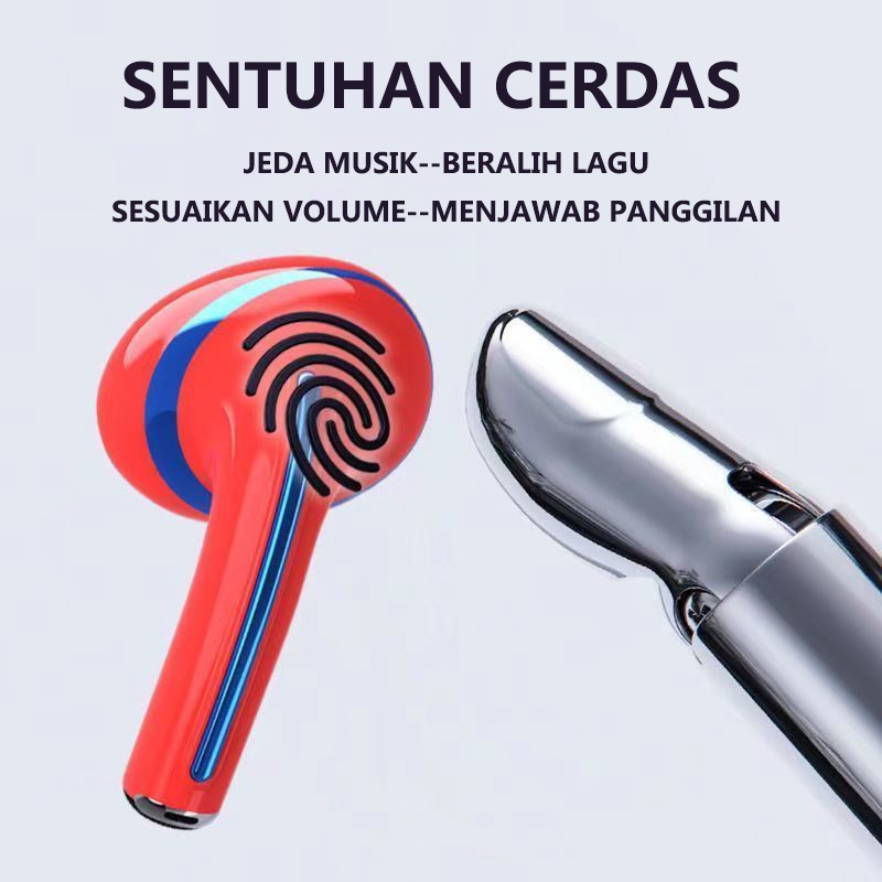 1. earphone Status pemasangan: Lampu merah dan biru berkedip bergantian Status pengisian daya: lampu merah selalu menyala Status terhubung: lampu mati Status musik/panggilan: lampu mati Pengisian selesai: lampu biru mati setelah 30 detik Status daya rendah: lampu merah berkedip dua kali dengan cepat