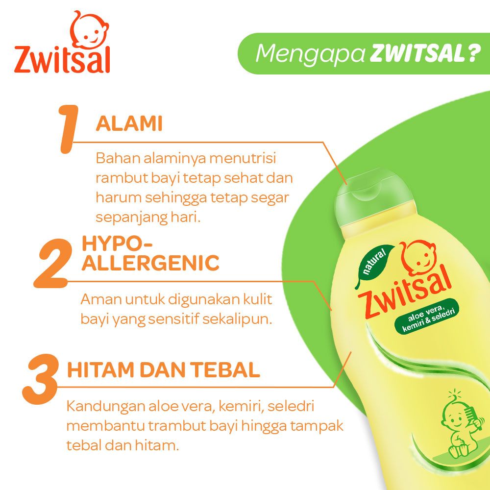 ZWITSAL BABY NATURAL SHAMPOO ALOE VERA, KEMIRI, SELEDRI 100ML : Zwitsal Natural Baby Shampoo Aloe Vera adalah Shampoo dengan kandungan bahan alami aloe vera, kemiri, seledri yang membantu pertumbuhan rambut bayi hingga tampak tebal dan hitam. Dengan formulasi yang tidak pedih dimata, shampoo ini akan membersihkan dan melembutkan rambut si kecil. Dipercaya menemani cerianya perjalanan Bunda bersama si Kecil Terbukti tested hypoallergenic.