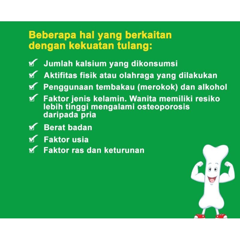 Manfaat: Memenuhi kebutuhan kalsium harian tubuh. Mencegah pengeroposan tulang. Mengatasi gangguan pada tulang akibat defisiensi metabolisme kalsium.