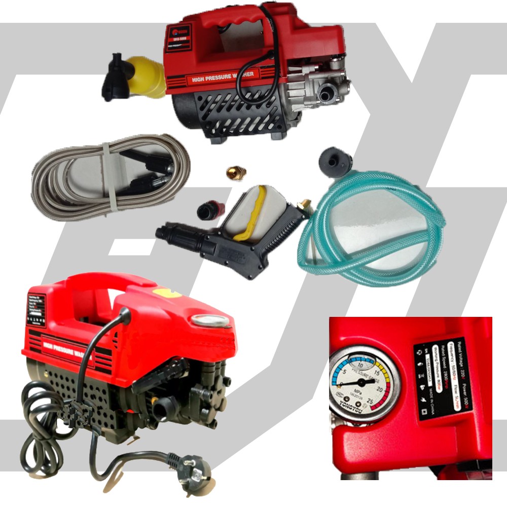 Spesifikasi : Voltage : 220V Frequency : 50/60hz Power : 500W Working Pressure : 80 Bar Flow : 5L/min
