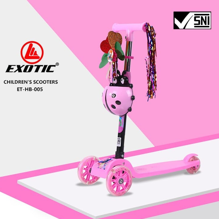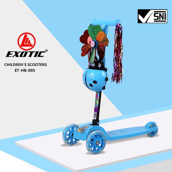 Scooter Anak Merk Exotic ET-HB-005 - Besi tebal dan berkualitas - Praktis karena bisa dilipat dan dibawa kemana- mana - Music - Bisa diatur ketinggian stang - Max beban 20kg - Cocok untuk usia 2-6th - ada kincir angin plastik
